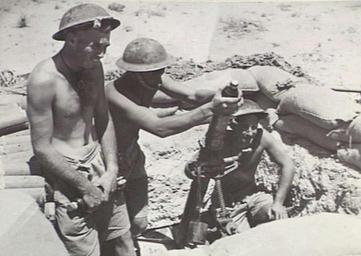 | Keywords: Australian 2-43rd Inf Bn mortar in 1942 (AWM image 024718).jpg en A mortar team from the Australian 2/43rd Infantry Battalion during the fighting around El Alamein July 1942 024718 Not stated at source 1942-07-30 PD-Australia PD-US-1996 Military history of Australia during World War II |