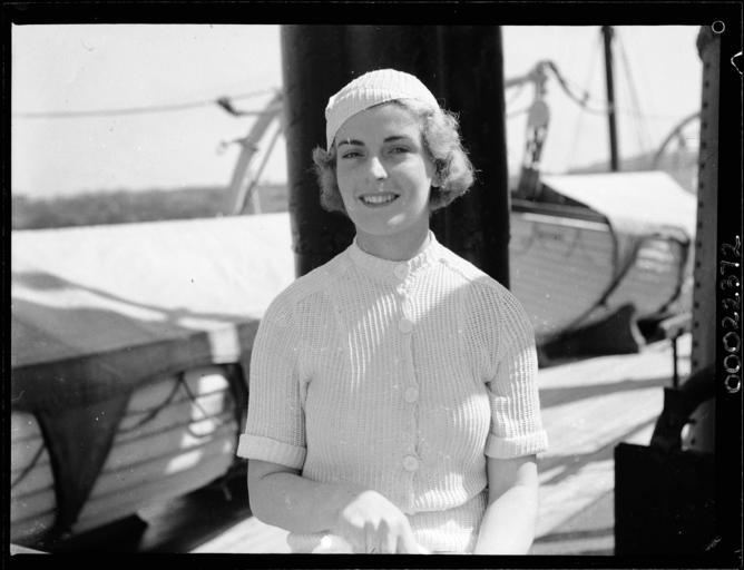 | Keywords: samuel j hood collection samueljhoodcollection hood collection hoodcollection hood morinda burns philp burnsphilp mystery island mysteryisland australian film australianfilm talkie cast crew producer director actors actresses brian abbot brianabbot leslie hay simpson lesliehaysimpson desmond hay desmondhay george rikard bell georgerikardbell grace rikard bell gracerikardbell jean mort jeanmort jean laidley jeanlaidley lost at sea lostatsea motor skiff motorskiff motor launch motorlaunch mystery star mysterystar george doran georgedoran jonas alfred lipman jonasalfredlipman joe lipman joelipman george d malcolm georgedmalcolm farewell streamers mort's dock balmain mortsdockbalmain mort's dock mortsdock 1930s fashion 1930sfashion 1930s women's fashion 1930swomensfashion 1930s women's clothing 1930swomensclothing vintage vintage clothing vintageclothing walsh bay walshbay thomas sutcliffe mort thomassutcliffemort blackandwhite people monochrome photo border black and white This photograph depicts Australian actress Jean Laidley who starred in the Australian film Mystery Island (1937). Her real name was Jean Mort and she was the great great granddaughter of Thomas Sutcliffe Mort, who established Mort's Dock in Balmain, Sydney. She is depicted on board SS MORINDA. The cast and crew were sailing from Walsh Bay, Sydney to Lord Howe Island to shoot the film. Shortly after shooting the film, George Rikard Bell (screen name Brian Abbot) and a fellow cast mate, Leslie Hay Simpson (screen name Desmond Hay), decided to forego the trip back to Sydney on board MORINDA and opted to sail on board the 16-foot motor skiff, MYSTERY STAR. The two were never seen again. Please see our blog for an extended version of the story. This photo is part of the Australian National Maritime Museum’s Samuel J. Hood Studio collection. Sam Hood (1872-1953) was a Sydney photographer with a passion for ships. His 60-year career spanned the romantic age of sail and two world wars. The photos in the collection were taken mainly in Sydney and Newcastle during the first half of the 20th century. The ANMM undertakes research and accepts public comments that enhance the information we hold about images in our collection. This record has been updated accordingly. Photographer: Samuel J. Hood Studio Collection Object no. 00022872 This photograph depicts Australian actress Jean Laidley who starred in the Australian film Mystery Island (1937). Her real name was Jean Mort and she was the great great granddaughter of Thomas Sutcliffe Mort, who established Mort's Dock in Balmain, Sydney. She is depicted on board SS MORINDA. The cast and crew were sailing from Walsh Bay, Sydney to Lord Howe Island to shoot the film. Shortly after shooting the film, George Rikard Bell (screen name Brian Abbot) and a fellow cast mate, Leslie Hay Simpson (screen name Desmond Hay), decided to forego the trip back to Sydney on board MORINDA and opted to sail on board the 16-foot motor skiff, MYSTERY STAR. The two were never seen again. Please see our blog for an extended version of the story. This photo is part of the Australian National Maritime Museum’s Samuel J. Hood Studio collection. Sam Hood (1872-1953) was a Sydney photographer with a passion for ships. His 60-year career spanned the romantic age of sail and two world wars. The photos in the collection were taken mainly in Sydney and Newcastle during the first half of the 20th century. The ANMM undertakes research and accepts public comments that enhance the information we hold about images in our collection. This record has been updated accordingly. Photographer: Samuel J. Hood Studio Collection Object no. 00022872 |