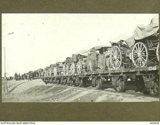 | View Original: | Australian Army rail transport arriving at the railhead during World War I.JPG (640x499) | |||
