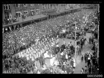 | Keywords: hood collection hoodcollection 35090 1919 samuel j hood collection samueljhoodcollection hood servicemen crowds sydney city sydney streets sydneystreets old photographs oldphotographs old photographs of sydney oldphotographsofsydney world war i worldwari wwi victory parade victoryparade soldiers australia australian troops australiantroops australian soldiers australiansoldiers anzac anzac march anzacmarch anzac parade anzacparade aussie diggers aussiediggers 1910s fashion 1910sfashion military personnel militarypersonnel blackandwhite monochrome photo border black and white This photograph depicts Australian servicemen in a Sydney street with crowds of onlookers during the Victory Parade held on 19 July 1919. This photo is part of the Australian National Maritime Museum’s Samuel J. Hood Studio collection. Sam Hood (1872-1953) was a Sydney photographer with a passion for ships. His 60-year career spanned the romantic age of sail and two world wars. The photos in the collection were taken mainly in Sydney and Newcastle during the first half of the 20th century. The ANMM undertakes research and accepts public comments that enhance the information we hold about images in our collection. This record has been updated accordingly. Photographer: Samuel J. Hood Studio Collection Object no. 00035090 This photograph depicts Australian servicemen in a Sydney street with crowds of onlookers during the Victory Parade held on 19 July 1919. This photo is part of the Australian National Maritime Museum’s Samuel J. Hood Studio collection. Sam Hood (1872-1953) was a Sydney photographer with a passion for ships. His 60-year career spanned the romantic age of sail and two world wars. The photos in the collection were taken mainly in Sydney and Newcastle during the first half of the 20th century. The ANMM undertakes research and accepts public comments that enhance the information we hold about images in our collection. This record has been updated accordingly. Photographer: Samuel J. Hood Studio Collection Object no. 00035090 |