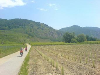 Keywords: austria landscape scenic mountains valley bikes bicyclists riding fields rural bike trail crops agriculture farm trees nature outside country countryside summer spring