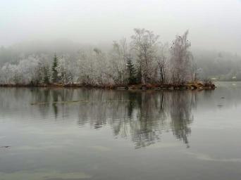 Keywords: austria landscape scenic winter snow ice lake stream river water reflections forest trees woods hoar frost nature outside sky clouds