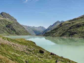 Keywords: austria mountains valley lake river water reflections sky clouds shoreline plants