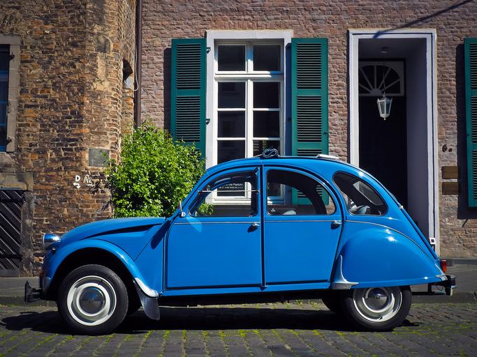 Keywords: auto 2cv citroën oldtimer duck citroen deux chevaux vapeur vehicle blue old france classic car age old car facade old vehicles