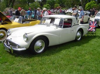 Keywords: auto car automobile vehicle transport classic vintage show crowd outdoors daimler white