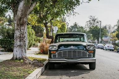 Keywords: auto car automobile vintage black headlights road curb street grill no people
