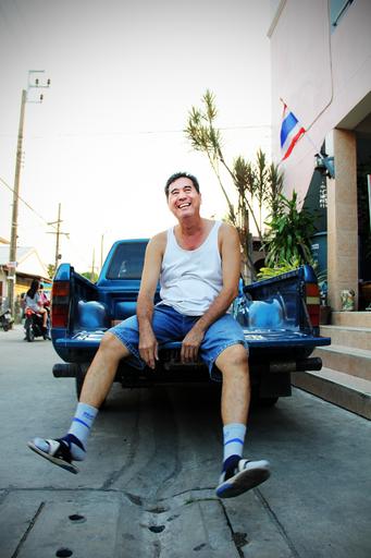 Keywords: auto loading ramp man cheerful sit joy