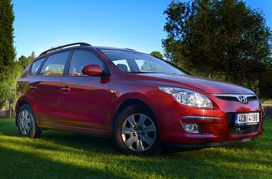 Keywords: auto red personal car grass sky tree