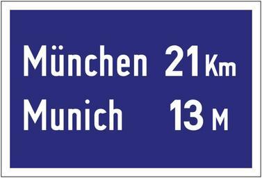 | Keywords: Autobahn-Entfernungstafel, nach einem Film-Standbild nach 1945.svg de Autobahn-Entfernungstafel aus der amerikanischen Besatzungszeit nach 1945 Nach einem historischen Filmstandbild Die amtliche ultramarinblaue Farbgebung wurde dem RAL-Farbtonregister 840 R entnommen Der durch den RAL deffinierte digitale Farbton wird hier wiedergegeben own gezeichnet durch Mediatus Mediatus 03 01 2014 Herstellungsdatum SimplSVG Cc-zero PD-VzKat Diagrams of motorway road signs of Germany 1945 set Diagrams of motorway road signs of Germany 1953 set Diagrams of motorway road signs of Germany SVG road signs in Germany |