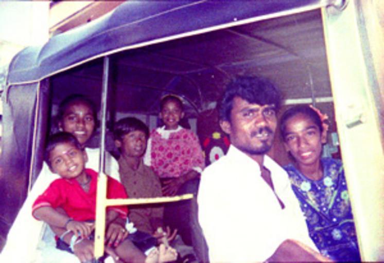 | Keywords: Autorickshawkidsramu.jpg K Ramu driver of autorickshaw in Triplicane Chennai with his sister Mariyammal his son Miss Velanganni of Broadlands A Prabhu and unknown girl Photograph by Author 2007-09-11 Robert Elliott Released to Public Domain Groups of people in Chennai |