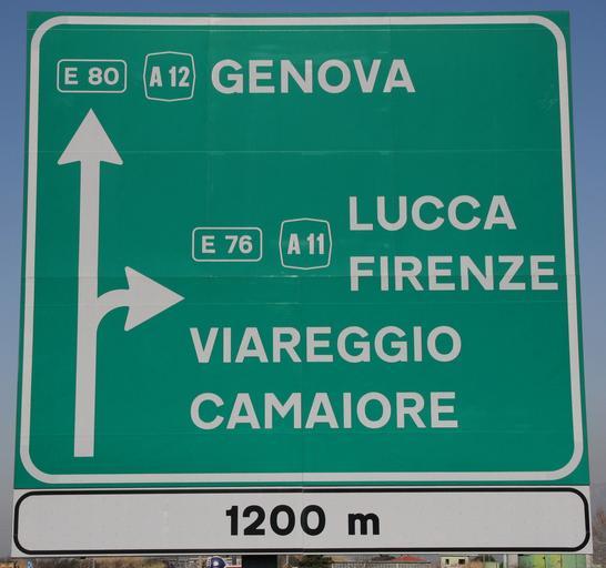 Keywords: Autostrada A12 Italia exit Viareggio 01.JPEG en ITA Autostrada A12 Italy traffic sign indicating exit Viareggio own Piergiuliano Chesi 2013-02-28 Autostrada A12 Italy