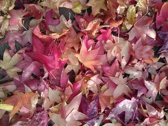 Keywords: autumn autumn leaves leaves fallen leaves red leaves pink leaves violet leaves nature pale pink leaves on ground pale sunlight resting maple maple leaf red japanese
