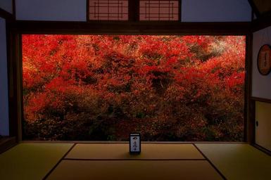 Keywords: autumn autumnal leaves azalea red window display
