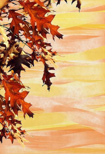 Keywords: autumn background leaves emerge stationery oak leaves red brown photo montage greeting card color autumn mood autumn colours
