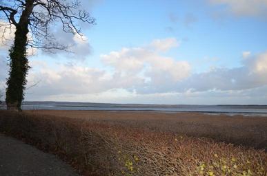 Keywords: autumn beautiful view road lake water meadow field countryside