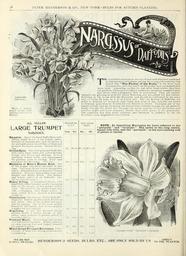 | Keywords: Autumn bulbs catalogue (16266025677).jpg 8 <br> PETER HENDERSON CO NEW YORK-BDLBS FOR AUTUMN PLANTING <br> - – <br> JiARCIsSnS <br> BMPBFSs <br> Prom a photo- <br> graph of onf hull <br> hearing foii rt pen <br> towers <br> iHE wdDflerfiil creatioiiH in tlie wny of newvnrii ties t 'c awakened <br> an intiTcst and i-ntliiisia ni anmng; tbe loversuf fli «»Tstliat has <br> laci-d this The Plo'wer of the Poets in tlip front rank <br> of popularity and tlK' \' merit all the praise t hat can l el ostowed <br> npon them Ajipearinjr as the v do just after bleak winter the v turn <br> our gardens lawns and woodland walks into p orj ous masses of jrold <br> and silver mth a fragranee that is emhantinjr The v arc equally <br> valuable for growing in pots for winter flowering ami are iirired for pot culture <br> flowering in the house with the Hyacinth and should lie cultivated In the same <br> way ” root-s at least in a 4- or 5 inch i ot The cut flowers of Daffodils are <br> mucli in demand for bouquets and vases and s ime of the varieties are forced <br> in immense quantities by florists for cut flowers in winter Narcissus are of the <br> eauiest culture and all excepting the Pol vanthus varieties on page 22 are perfectl v <br> hardy fftoo Zi The hilter live throup h tlie fevere winters ” if well proterled ” ani <br> produce larger and more ahiindant /lowers than when grown in the greenhouse <br> Our collection has lieen much enrichi'd and embraces in addition to the old <br> favorites many magnificent new h vlirids <br> ALL YELLOW <br> LARGE TRUMPET <br> NARCISSUS <br> Emperor Oneof thefinestDaffodilsinculti- <br> Tation entire flower of the richest vellow <br> trumpet of immense size and the i etals of <br> the perianth are so broad they overlap and <br> measure 3'/ inches across Grand for cut- <br> ting <br> Grolden Spnr Oneof thegrandest Daffodils <br> with extra l Trge bold rich yellow flowers <br> foliage ver v broail and striking It is of <br> tmusuall v robust habit and unsurjiaesed <br> for gardens pots or forcing Earl v and <br> extremel v fiiv flowering sv-e cut <br> Xazinius or Hale's Beaten Gold One <br> of the largest and most lie ititifnl of this <br> class Very large flower of rich deep golden <br> yellow Remarkable for an elegantl v twisted <br> perianth Trumiiet dc»'p golden large well <br> flanged and deejily fluted The darkest <br> and richest vellow of all Daffodils See <br> nut on opposite page <br> Senry Irving' a magnificent flower with <br> beautifully frilled trumpet nearl v two inches <br> wide at the mouth of rich golden vellow <br> color The i elals of the perianth are very <br> wide overlaiiping color bright yellow A <br> most perfect flower; nreived a first ia88 <br> certificate <br> Obvallarins Tliefamou t ˘ – Tenb v Daffodil <br> Elegantly formed Diediuui-slz -d flower of <br> rich yellow One of the earliest and excel- <br> lent for forcing One of the niost perfect <br> flowers in this faniil v an l we recommend <br> It highly for any iinrpone <br> Rngllobns \ very free bloomer ” broail <br> r etuled flower T inclicH across of jialc <br> yellow large Irnmpel of gohlen yellow a <br> heautiful v;ili 'l\' <br> Tnunpet Uajor riower largeand almost <br> 'it a uniform i i-«-p grdden Highly prized ns <br> in early for Ing s irt -iiirl birgi-ly ilaDted <br> lor outside b Iiliiig <br> Mixed ZiargeTrouipet Narcissus riant <br> bbernlly of these for cutting purposcfl and <br> iiHtnraiizing <br> Delivered free <br> in 0 S <br> Each <br> Ooz <br> 15c <br> 1 60 <br> 10c <br> 1 00 <br> 10c <br> 1 00 <br> loc <br> 1 no <br> Oi- iwii- <br> CC ; cue <br> 1 <br> 4c 4 <br> 1 <br> tr <br> o - <br> Buyer paying <br> Trinsil <br> Doz <br> 100 <br> NOTE ” In describing Narcissus we have referred to the <br> perianth and trumpet The latter is the long centre <br> funnel-like tube and the perianth is the surrounding row <br> of petals or leaves <br> ˘tiOLDES Jirilt TlllMrET NAiiiiBsra <br> WE DO NOT <br> SUPPLY nEAI R5 <br> HENDERSON'S SEEDS BILBS ETC ARE ONLY SOU BY L S <br> DIRECT <br> TO THE PLANTER <br> IJ 43899730 149965 78524 Page 18 Text http //www biodiversitylibrary org/page/43899730 1900 10 5962/bhl title 78524 Henry G Gilbert Nursery and Seed Trade Catalog Collection ; Peter Henderson Co NameFound Xazinius Biodiversity Heritage Library Autumn bulbs catalogue 1900 Garden Stories Bulbs Plants Catalogs Equipment and supplies Flowers Gardening Seeds Trade catalogues U S Department of Agriculture National Agricultural Library bhl page 43899730 dc identifier http //biodiversitylibrary org/page/43899730 Peter Henderson Co bhlGardenStories Narcissus BHLinbloom bulbs plants u s department of agriculture national agricultural library peter henderson co bhlgardenstories bhlinbloom Information field Flickr posted date ISOdate 2015-02-05 Check categories 2015 August 24 CC-BY-2 0 BioDivLibrary https //flickr com/photos/61021753 N02/16266025677 2015-08-24 23 57 11 cc-by-2 0 PD-old-70-1923 Autumn bulbs catalogue Photos uploaded from Flickr by Fæ using a script |