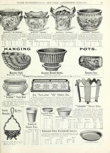 | Keywords: Autumn bulbs catalogue (16425986966).jpg PETER HENDERSON CO NEW YORK ”JARDINIERES POTS Etc <br> 71 <br> - <br> Jardiniere St Nicholas <br> Olive or preen or red ground colors <br> Stippled and burnished with Kold <br> raised scroll wi rk panels decorated <br> with flowers in natural colors <br> No A Holds 5-inch pot « 7S <br> B 6- 3 50 <br> ' ˘ c 7- '; 3 5 <br> D 8- 4 50 <br> – E q- ' 6 00 <br> Jardiniere Manilla <br> T/hite ground colors shaded with <br> cherry red or light greener blue or <br> bronze ornamented with gold scroll <br> and stipple and flower decorations ia <br> natural colors <br> No F Holds 7-ioch pot j as <br> G 8- ' ˘ a 6s <br> I' H- – ' 9- 3 '5 <br> J- ' 10- 4 00 <br> Jardiniere Santiago <br> White ground colors tin'ed and <br> bordered with red 1 r green or blue or <br> bron/e raised scroll work ornament- <br> ed with burnished gold and stipple <br> panels of flowers in n ;tural colors <br> No K Holds 7-inch pot 7 25 <br> L ˘ ˘ 8- 2 65 <br> M 9- 3 5 <br> N ' – xc- 4 00 <br> Tokonabi Jardiniere <br> A Japanese ware somewhat resem- <br> bling very dark teiracotta; it is very <br> hard und exquisitely shaded dra- <br> gons and birds in raised relief on dot- <br> ted clouds; the effect is quiet and rich <br> No 0 Holds 7-inch pot i co <br> ˘ ˘ P 8- r 50 <br> Q 9- 2 00 <br> R 10- 3 00 <br> J-CA NGING <br> POXS <br> Banking Shell Hanging ouod Rustic <br> Ivory white ii-inch 1 00 7-inch 3CC ; 9-inch 50C <br> Brass Chains extra each 15c i 5o per do en; by mail iSc 1 75 per dozen <br> Hanging Log <br> 7-inch 35c ; 9-inch 50c <br> ' t r 'Yi'f ff'y' \ <br> ' Fashion Fern Dish <br> Prices include insiii'j / ˘m <br> Fine white porcelain with raised scroll <br> work and legs floral decoratioris in <br> colors with gold stipple 6-inch 1 50; <br> 7-iacb 1 75; 8-inch _' oo <br> eW Ferf ction 'll r Window 13ox <br> Soil will not get soggy and sour in this box for water drains <br> o I consequently plan's should thrive and bloom as luxuriantly <br> as when grown in pois and yet no dr p can escape to spoil things <br> 'J he Minton tiles are deco-aled in various colors and designs <br> under glaze The frame and drip pan are of heavy sheet-iron <br> enanielel Size of box outside 2; inches long by 8 inches <br> wide; drip pan 27 inches long by 10 inches wi ; Pi v 1 <br> l ustic <br> Han«fin ' <br> 4-inch <br> Standard <br> FloWer Tots <br> ucers <br> IVr doz <br> o to <br> ˘as <br> – 3' <br> – 50 <br> 60 <br> T 00 <br> 1 25 <br> 1 50 <br> Round Seed and Bulb <br> Pans <br> H'gt Width <br> 4 \ 8 incfe <br> X 10 <br> 6x12 <br> 7X 14 <br> 8 X 16 <br> 9 X i3 <br> Per doz <br> 1 CO <br> I 50 <br> a 00 <br> 4 C0 <br> 8 00 <br> la oo <br> Lg - <br> Columliia Flower Tulis <br> Durable cypress staves held by strong <br> steel wire hoops that can be lightened by <br> draw screws Cfnncct d with the handles <br> The Fancy i' - - c/// has staves finished <br> like red wo d alternating with staves of <br> natural finish all vjtnished The Plain <br> hassmoo h top and is entirely natural wood <br> No <br> Diam- <br> eter <br> A 12 inches <br> B 15 ˘ ˘ <br> C 18 <br> D ai <br> ÂŁ 34 <br> Height <br> II incnes <br> Fancy <br> Each <br> §1 50 <br> 2 25 <br> 3 00 <br> 3-75 <br> 4 50 <br> Plain <br> Each <br> 1 00 <br> 1 50 <br> a 00 <br> 2 50 <br> 3 00 <br> 2-inch <br> 2 -inch <br> 3- <br> Per doz Per 100 <br> » io <br> 13 <br> ˘Â«5 <br> ˘as <br> ˘4S <br> ˘75 <br> ' ˘as <br> §0 60 <br> 80 <br> 1 10 <br> 1 65 <br> 3 00 <br> 4 50 <br> 7-SO <br> S-'\n 7CC ; j-in <br> i oc; ii-in <br> 1 35; 13 in 1 <br> X 50 IC OO <br> a 00 15 00 <br> 2 75 a- Ao <br> '0 40 00 <br> Indurated Fibre Waterproof Saucers <br> Arc not por us and theret'orc do not absorb moisture <br> and spoil woodwork tables etc on which plants stand <br> Not breakable Color terra cotia brown <br> Each <br> Each <br> Each <br> 4-incb 6c <br> 8- inch 8c <br> i2-inch 12C <br> – ;- ' – 7C <br> 6- 7C <br> 7- ˘' 8c <br> 9 9C <br> 10- IOC <br> IX- XIC <br> 13- ' – ISC <br> 14- i8c <br> W ATKRrROuF SAUCER 43899783 149965 78524 Page 71 Text http //www biodiversitylibrary org/page/43899783 1900 10 5962/bhl title 78524 Henry G Gilbert Nursery and Seed Trade Catalog Collection ; Peter Henderson Co NameFound Tulis NameConfirmed Tulis NameBankID 4380361 Biodiversity Heritage Library Autumn bulbs catalogue 1900 Garden Stories Bulbs Plants Catalogs Equipment and supplies Flowers Gardening Seeds Trade catalogues U S Department of Agriculture National Agricultural Library bhl page 43899783 dc identifier http //biodiversitylibrary org/page/43899783 Peter Henderson Co bhlGardenStories Hanging Pots BHLinbloom bulbs plants u s department of agriculture national agricultural library peter henderson co bhlgardenstories hanging pots bhlinbloom Information field Flickr posted date ISOdate 2015-02-05 Check categories 2015 August 24 CC-BY-2 0 BioDivLibrary https //flickr com/photos/61021753 N02/16425986966 2015-08-24 23 55 15 cc-by-2 0 PD-old-70-1923 Autumn bulbs catalogue Photos uploaded from Flickr by Fæ using a script |