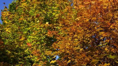 Keywords: autumn deciduous trees fall colors orange green reddish chlorophyll