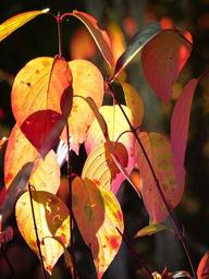 Keywords: autumn fall red yellow leaves tree forest foliage nature season colorful close up vibrant environment autumnal backlight rural