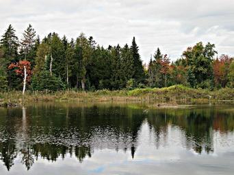 Keywords: autumn fall trees evergreens lake pond water reflection nature outdoors october scenic