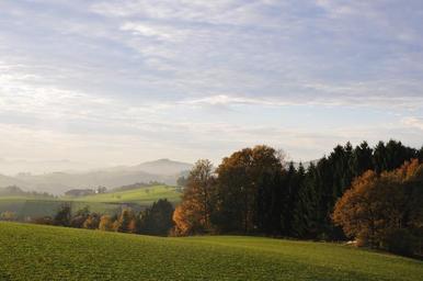 Keywords: autumn fog meadow forest nature mood landscape atmosphere tree plant field mühlviertel upper austria cross bath