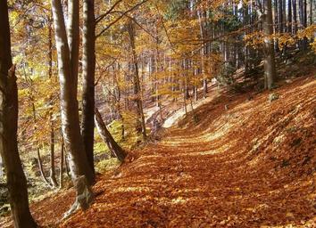 Keywords: autumn forest leaves fallen leaves trees path deciduous tree