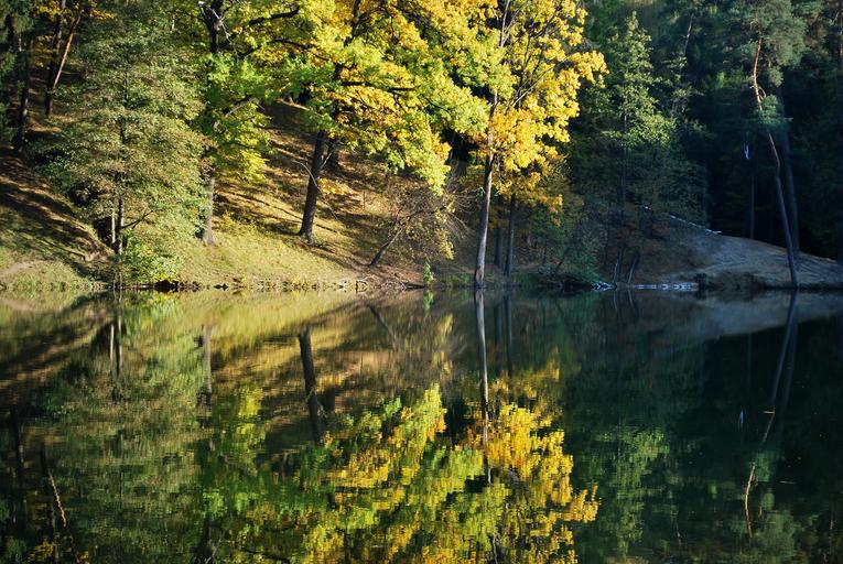 Keywords: autumn forest nature golden autumn autumn forest trees landscape tree yellow river leaves beautiful lake water fairy view sunlight slope hill photo outdoors sun sunny day living nature handsomely yellow leaves green leaves