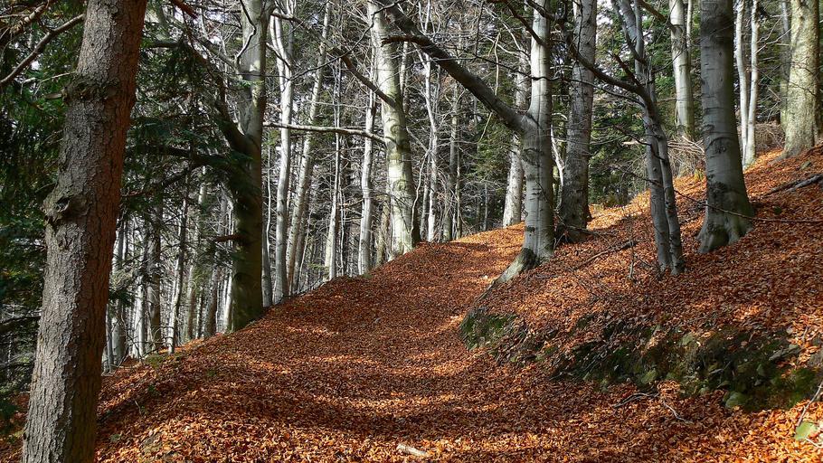 Keywords: autumn forest road foliage colors buczyna west pomeranian voivodeship tree nature