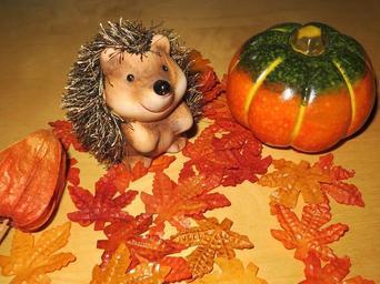 Keywords: autumn hedgehog pumpkin decoration leaves orange