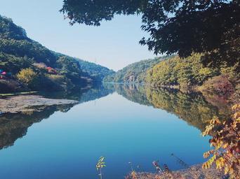 Keywords: autumn in autumn autumn sky lake reservoir republic of korea haman nature 0 won ipgok gunrip ipgok samrimyokjang bathing wood tranquility korea beautiful peaceful tranquil reflections pond