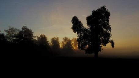 Keywords: autumn landscape trees silhouette back light gloomy mysterious mystical mood morning dawn fog light tree