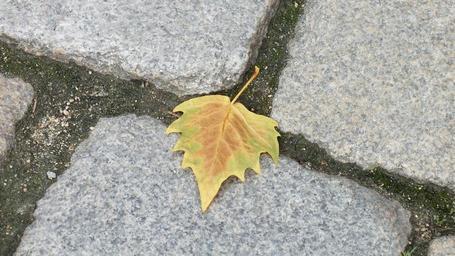 Keywords: autumn leaf street cobblestone fall nature yellow maple foliage