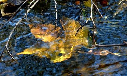 Keywords: autumn leaf water mirroring golden autumn