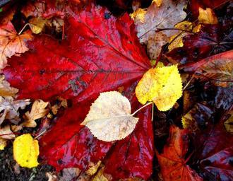 Keywords: autumn leaves fall leaves colorful leaf october red yellow wet rain