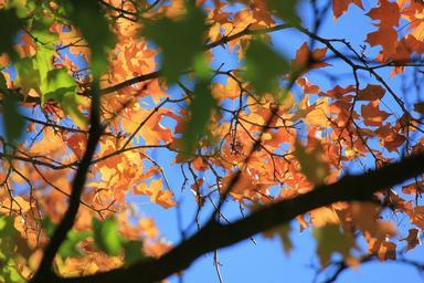 Keywords: autumn leaves fall tree blue sky autumn fall tree leaf sunlight october leaves outdoor colors orange green red nature