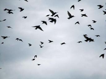 Keywords: autumn migratory birds stare flock of birds star flight exit black sky nature