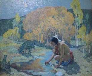 | Keywords: 'Autumn Moon' by E. Irving Couse, 1927.jpg title Autumn Moon own Wmpearl oil on canvas El Paso Museum of Art Creator Eanger Irving Couse 1927 reflection Paintings of Native Americans by Eanger Irving Couse 1927 oil on canvas paintings in the United States Couse American paintings in the El Paso Museum of Art PD-old-auto 1936 |