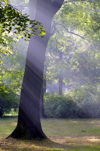 Keywords: autumn morning the sun's rays park forest blurry partly sunny tree shadows polyana nature landscape haze luminously