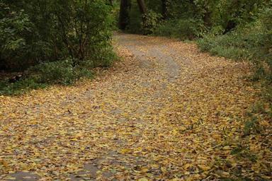 Keywords: autumn road twist fallen leaves yellow leaves