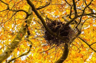 Keywords: autumn tree branch branches leaf leaves yellow nest seasons