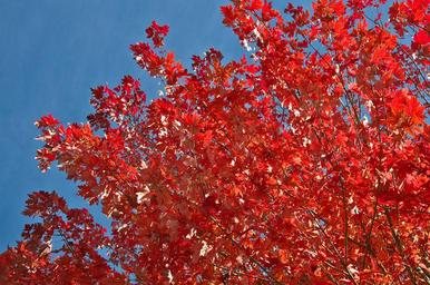 Keywords: autumn tree leaves red sky blue