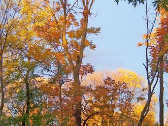 Keywords: autumn trees fall season leaves yellow green branches changing seasons blue sky colorful foliage seasonal bright day woods wooden outdoors plants nature