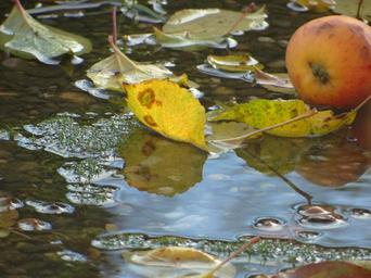 Keywords: autumn water nature leaf apple windfall