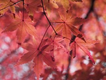 Keywords: autumnal leaves autumn aomoriya star resort maple aomori japan antomasako red yellow leaf light show through vein branch