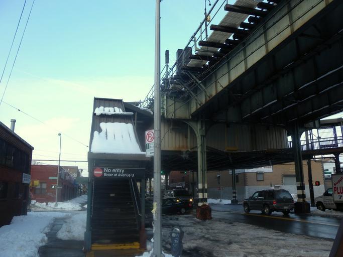 | Keywords: Av U Culver sta exit snow jeh.jpg  en Looking north at southwest exit of Avenue U station on a mostly cloudy afternoon own Jim henderson 2011-01-30 40 35 7 0 N 73 58 418 0 W source exif_heading NNE Cc-zero Avenue U IND Culver Line Snow in Brooklyn New York City |