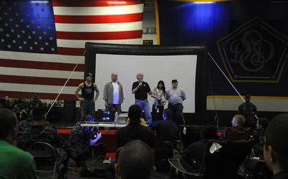 | Keywords: Avatar cast & crew on USS Dwight D. Eisenhower (CVN-69) 2010-01-27 3.jpg James Cameron center director of the motion picture Avatar and actors Stephen Lang left producer Jon Landau actress Michelle Rodriguez and military consultant John David Cameron speak to sailors aboard the Nimitz-class aircraft carrier USS Dwight D Eisenhower CVN-69 before a showing the movie in the ship's hangar bay http //www navy mil/view_image asp id 80996 2010-01-27 MC3 Matthew Bookwalter USN PD-USGov-Military-Navy Personality rights Files by User BrokenSphere Avatar 2009 film Aboard USS Dwight D Eisenhower CVN-69 James Cameron Stephen Lang actor in 2010 Michelle Rodriguez in 2010 Photographs of flags of the United States |