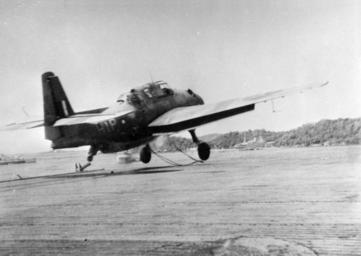 | Keywords: Avenger taking off from HMS Empress 1945.jpg A Royal Navy Grumman Avenger from 845 Naval Air Squadron taking off from the escort carrier HMS Empress D42 near Trincomalee Ceylon U S Navy National Museum of Naval Aviation photo No http //collections naval aviation museum/emuwebdoncoms/pages/doncoms/Display php irn 16034575 QueryPage 2Femuwebdoncoms 2Fpages 2Fdoncoms 2FAdvQuery php 1996 253 1734 ca 1945 U S Navy PD-USGov-Military-Navy Avenger in service with the Royal Navy 845 Naval Air Squadron HMS Empress D42 |