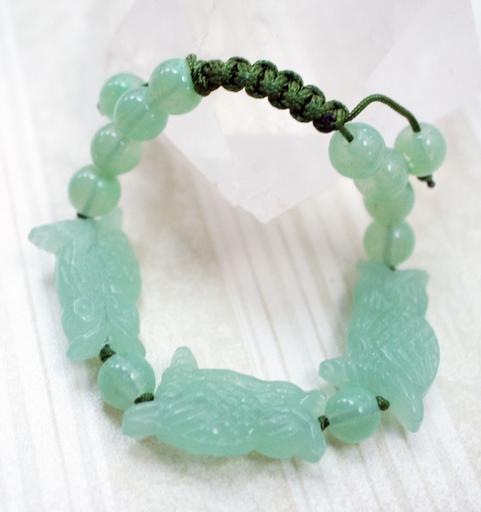 Keywords: aventurine green owl bracelet stone gem handmade beaded jewelry fashion birds carved semiprecious gemstones natural crystal gift