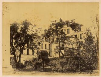 | Keywords: Avenue de Neuilly WDL1327.png Artwork ru Б аквейе Б уно 1823 1875 гг fr Braquehais Bruno 1823-1875 en Braquehais Bruno 1823-1875 zh 布鲁诺·布拉奇海 ,1823-1875 年 pt Braquehais Bruno 1823-1875 ar براكهيه برونو، 1823-1875 es Braquehais Bruno 1823-1875 ru Авеню де ейи fr Avenue de Neuilly en Avenue de Neuilly zh 讷伊大道 pt Avenue de Neuilly ar جادة نويي ru П ичиной ф анко-п усской войны стал ост нап яженности в отношениях между Ф анцией и П уссией в 1860-х гг Ф анция п и импе ато е аполеоне III была полна ешимости п ове ить астущую силу П уссии и отомстить за то что она ассмат ивала как яд дипломатических унижений П уссия п и канцле е Отто фон Бисма ке считала что война ге манских госуда ств п отив Ф анции под уководством П уссии станет ешающим шагом к созданию единой Ге манской импе ии Конфликт начался 19 июля 1870 г когда Ф анция объявила войну Ф анцузская а мия оказалась ужасно неподготовленной и поте пела сок ушительное по ажение в битве п и Седане отк ыв до огу на Па иж К 19 сентяб я немцкие войска полностью ок ужили го од и начали осаду кото ая п одлилась более четы ех месяцев От езанные от поставок п одовольствия из сельской местности па ижане пытались выжить питаясь собаками кошками и даже животными из па ижского зоопа ка Де евья на Елисейских полях и в па ках были вы ублены и использованы в качестве топлива 5 янва я немецкие войска начали бомба ди овку го ода кото ая п одолжалась по несколько часов каждую ночь в течение 23 суток а ок естности Па ижа было сб ошено около 12 000 сна ядов кото ые убили около 400 человек Па иж сдался 28 янва я в сущности положив конец войне За по ажением ф анцузов последовало на одное восстание и установление в а те 1871г Па ижской коммуны еволюционного п авительства сфо ми ованного в соответствии с ана хистскими и социалистическими п инципами Коммуна была жестоко подавлена в мае 1871 г ф анцузскими войсками п авительства Адольфа Тье а Во в емя неп одолжительного конт оля над Па ижем коммуна ы аз ушали импе ато скую колонну на Вандомской площади Подавление коммуны п ивело к дальнейшим значительным аз ушениям в го оде когда коммуна ы подожгли дво ец Тюиль и Лув и д угие здания К оме того многие здания пост адали или были аз ушены во в емя отчаянной пе ест елки между коммуна ами и конт еволюционными силами Siege de Paris 1870 1871 Осада Па ижа 1870 1871 гг п едставляет собой альбом из 110 фотог афий сделанных Огюстом Б уно Б аквейе 1823 1875 гг ф анцузским фотог афом и п ог ессивным фотожу налистом документи овавшим осаду и последствия бомба ди овок а также аз ушения п оизошедшие во в емя Па ижской коммуны <br>Авеню де ейи Па иж Ф анция ; Ф анко-п усская война 1870 1871 гг ; Сады; Память ми а; Уще б нанесенный войной fr La guerre franco-allemande fut provoquée par l escalade des tensions entre la France et la Prusse dans les années 1860 La France sous l empereur Napoléon III était déterminée à contenir la croissance de la puissance prussienne et à venger ce qui était considéré comme une série d humiliations diplomatiques La Prusse sous le chancelier Otto von Bismarck considérait qu une guerre dirigée par la Prusse et menée par les États allemands contre la France serait un acte décisif menant à la création d un empire allemand unifié Le conflit débuta le 19 juillet 1870 jour où la France déclara la guerre L armée française s avéra terriblement mal préparée et subit une défaite désastreuse lors de la bataille de Sedan laissant la voie libre vers Paris Le 19 septembre les Allemands encerclèrent complètement la ville et commencèrent un siège qui allait durer plus de quatre mois Coupés du ravitaillement provenant de la campagne les Parisiens survécurent en mangeant les chiens les chats et même la plupart des animaux du zoo de Paris Les arbres des Champs-Élysées et des parcs furent coupés et brûlés pour servir de combustible Le 5 janvier les armées allemandes entreprirent le bombardement de la ville qui dura plusieurs heures chaque nuit durant 23 nuits Environ 12 000 obus tombèrent sur les quartiers de Paris tuant près de 400 personnes Paris capitula le 28 janvier mettant ainsi