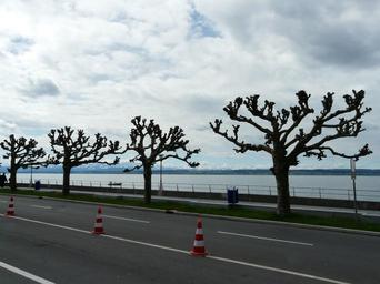 Keywords: avenue plane plane avenue road lake water sky clouds cloudiness drive coastal road hat security barrier